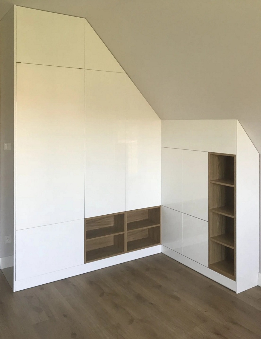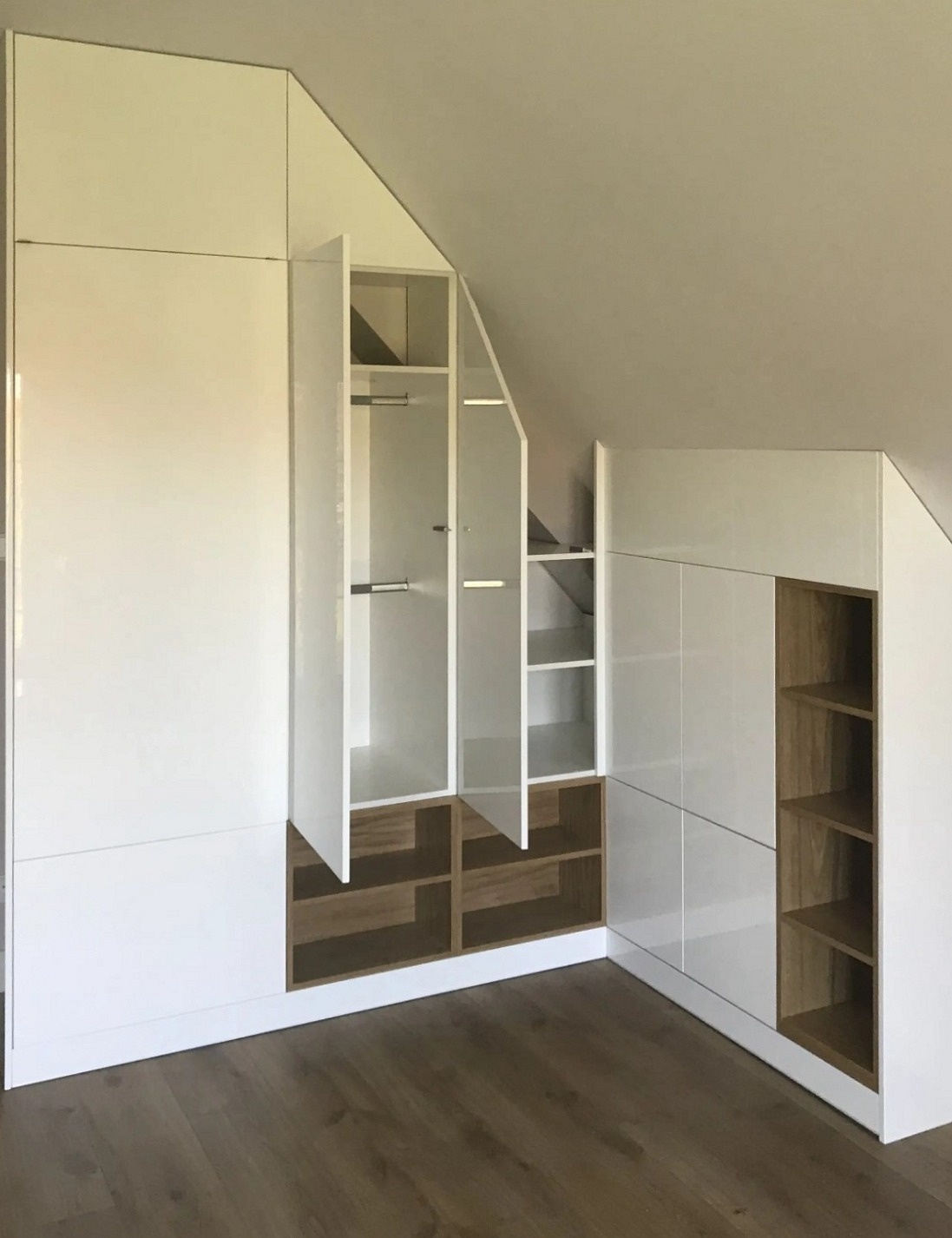 Низкий П-образный шкаф из МДФ на мансарду «Модель 848»