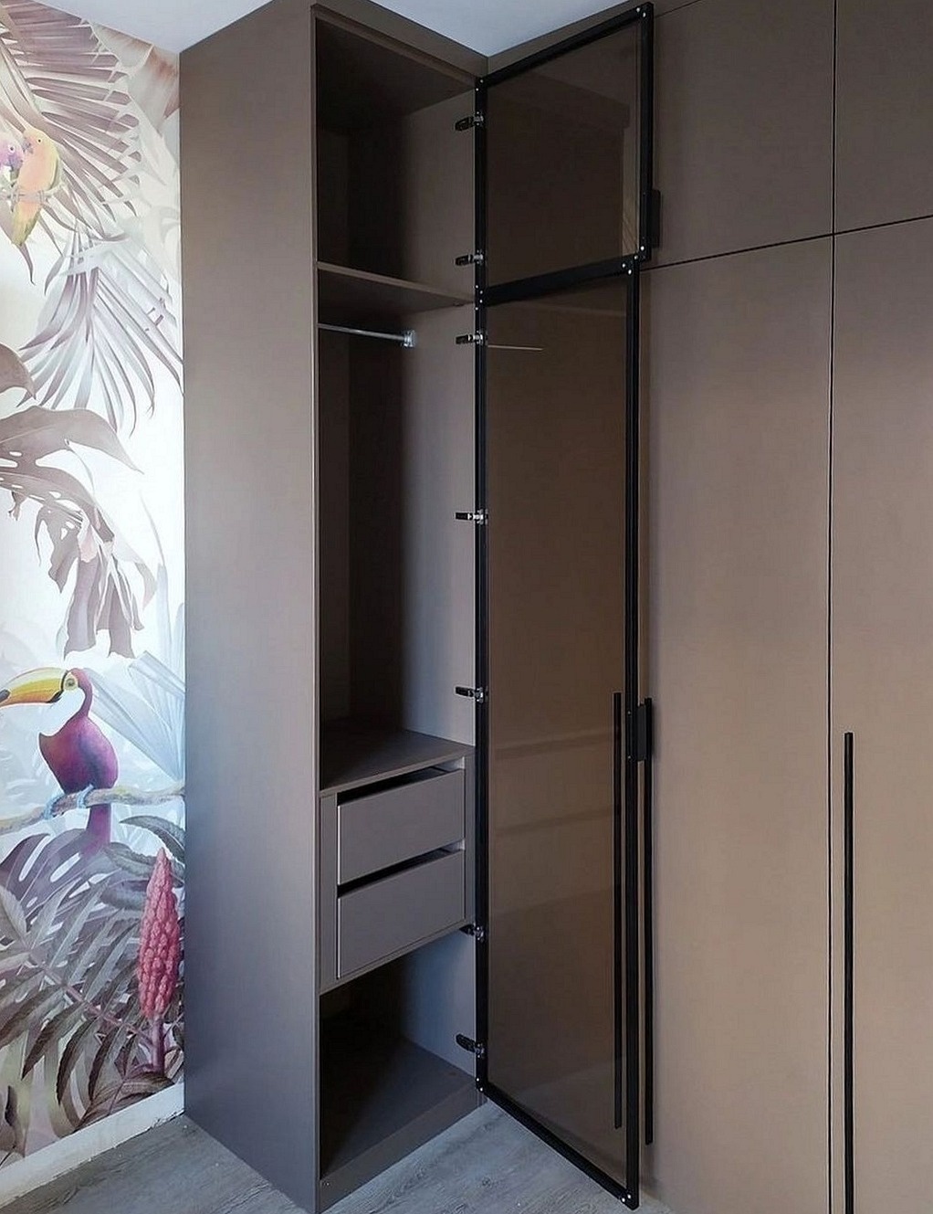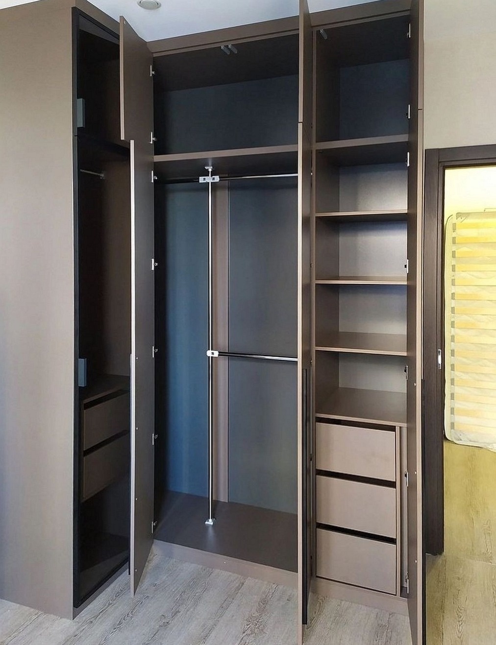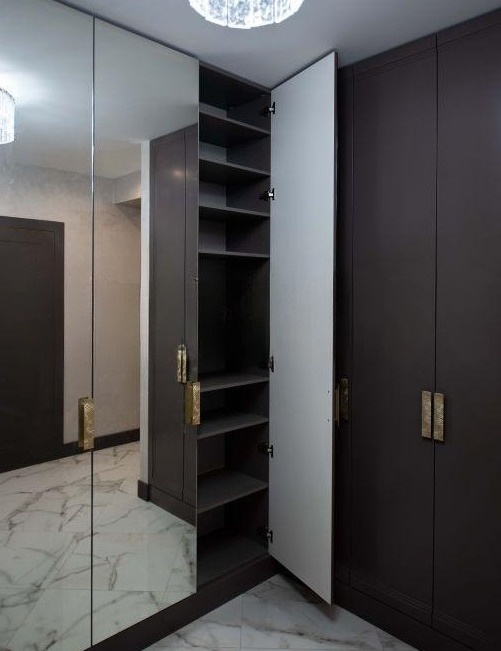 Угловой распашной шкаф коричневого цвета «Модель 1228»