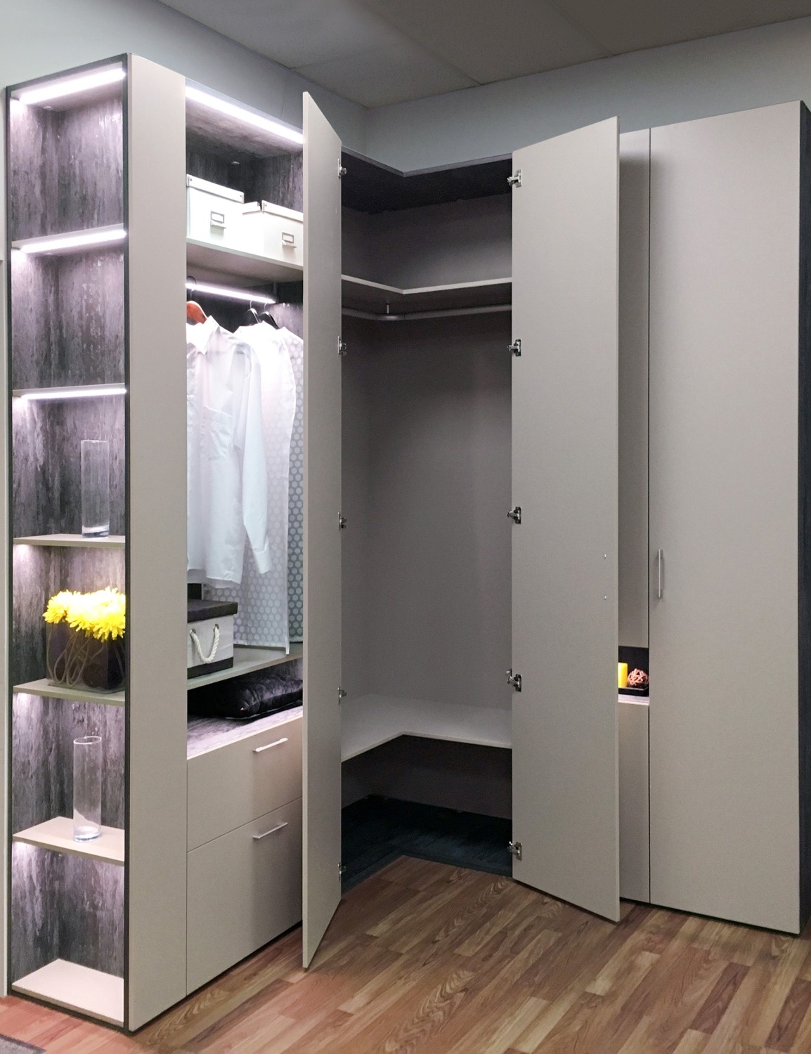 Угловой шкаф в современном стиле серого цвета «Модель 1190»