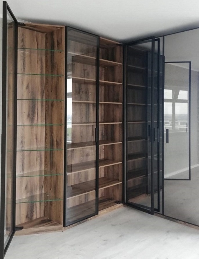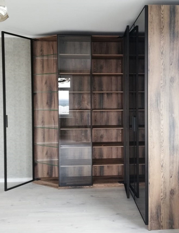 Угловой шкаф-витрина с дверями из стекла на заказ «Модель 1170»