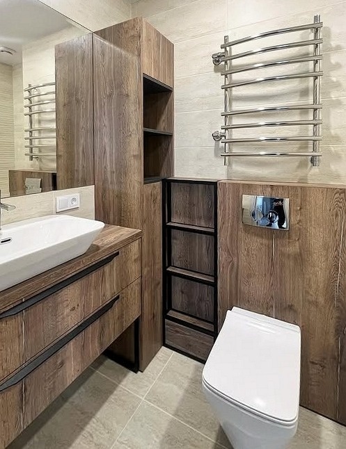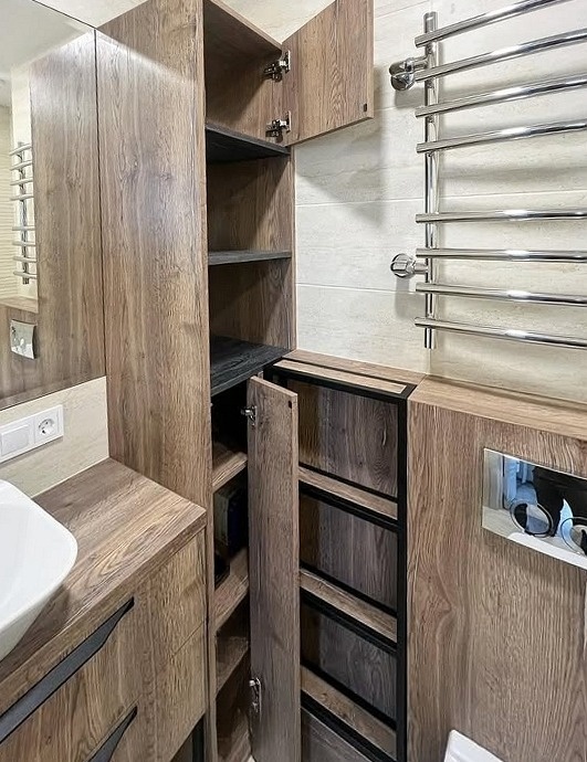 Встроенный шкаф цвета дуб в санузел «Модель 1189»