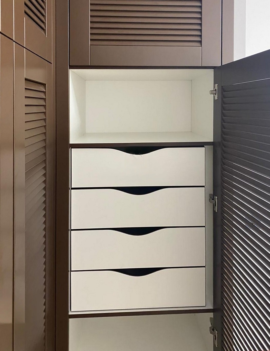 Встроенный жалюзийный угловой шкаф коричневого цвета «Модель 1143»