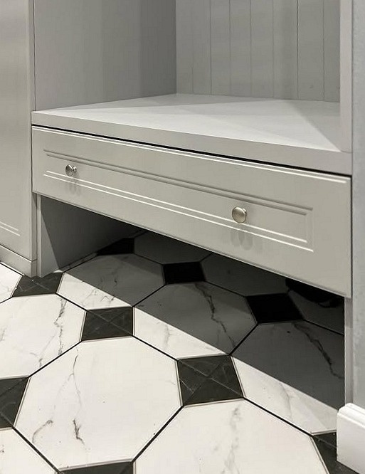 Встроенный угловой шкаф с тумбой в ванную «Модель 1218»