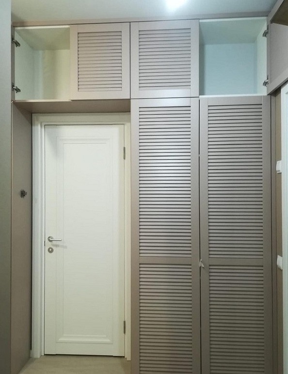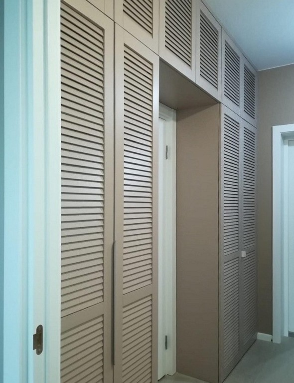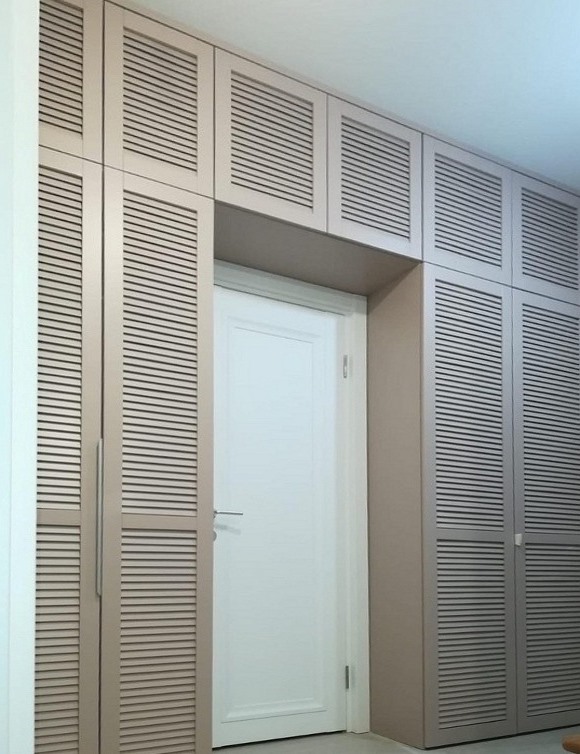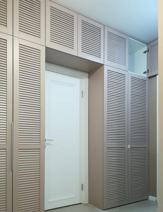 Распашной шкаф в комнату вокруг двери с жалюзийными дверями «Модель 124»