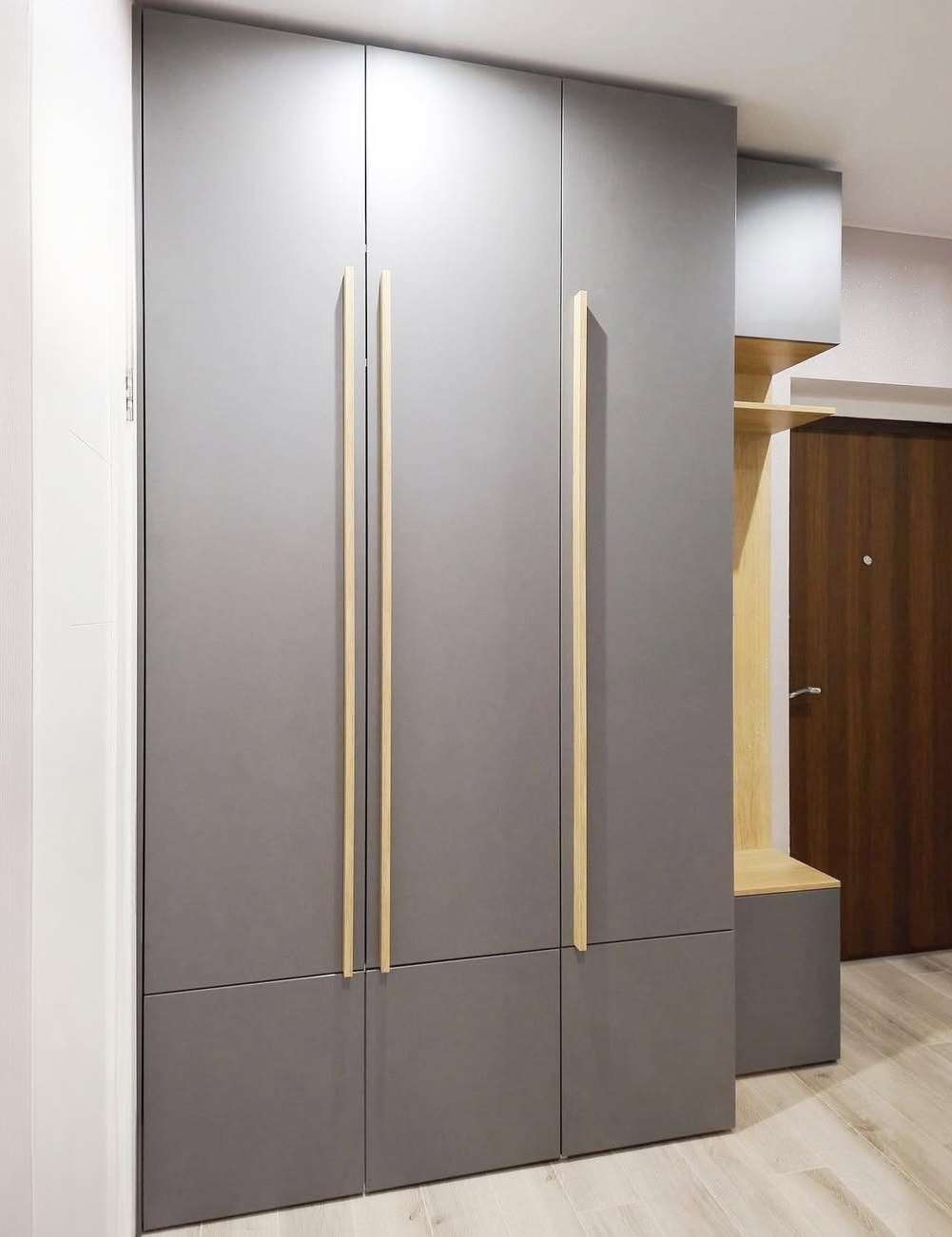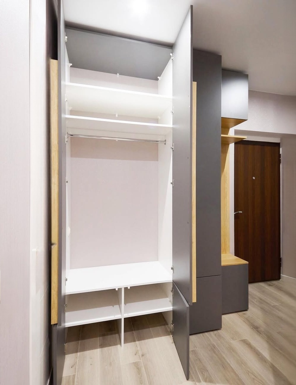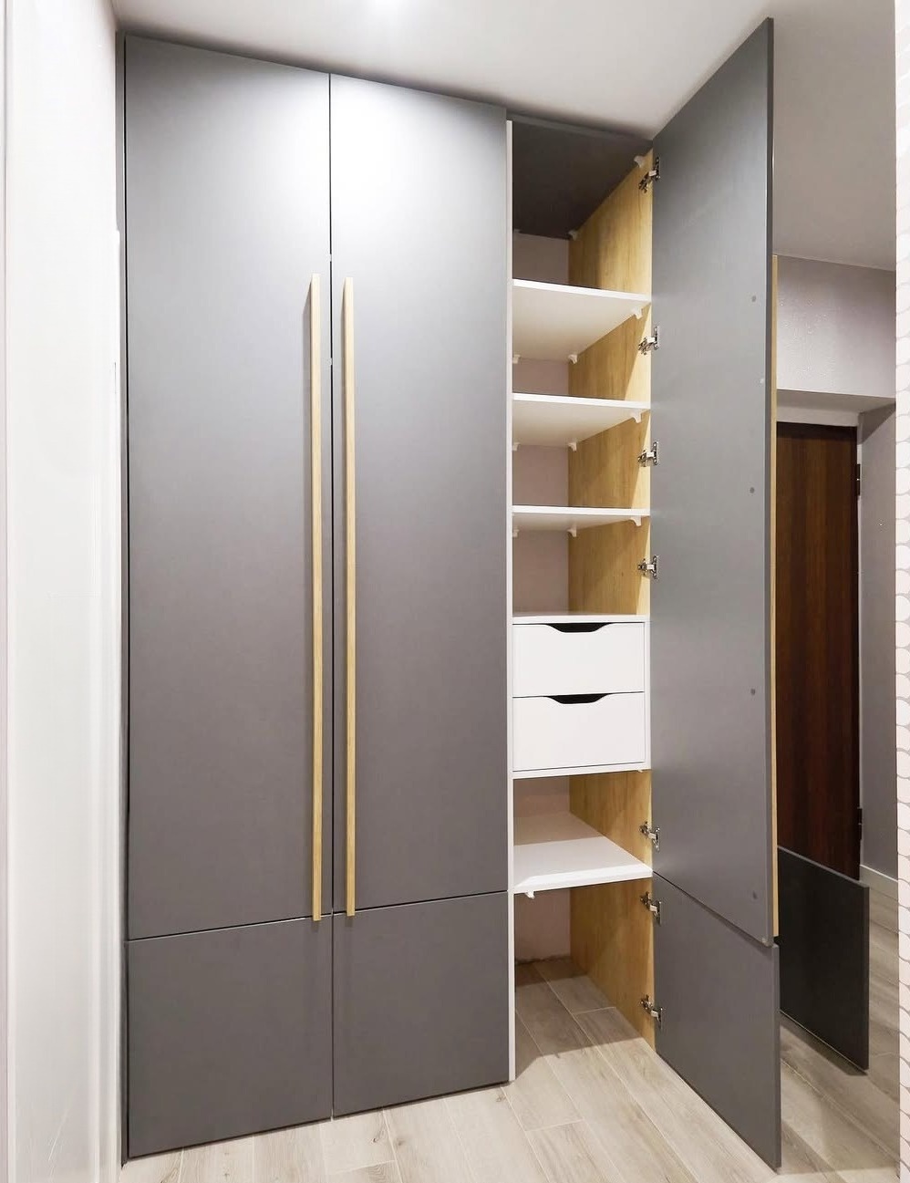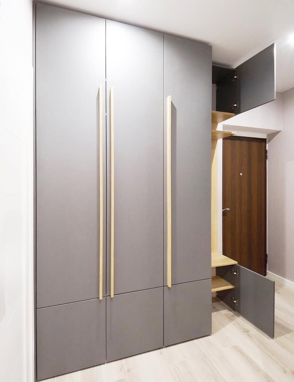 Распашной серый шкаф встроенный в прихожую «Модель 473»