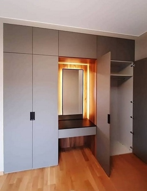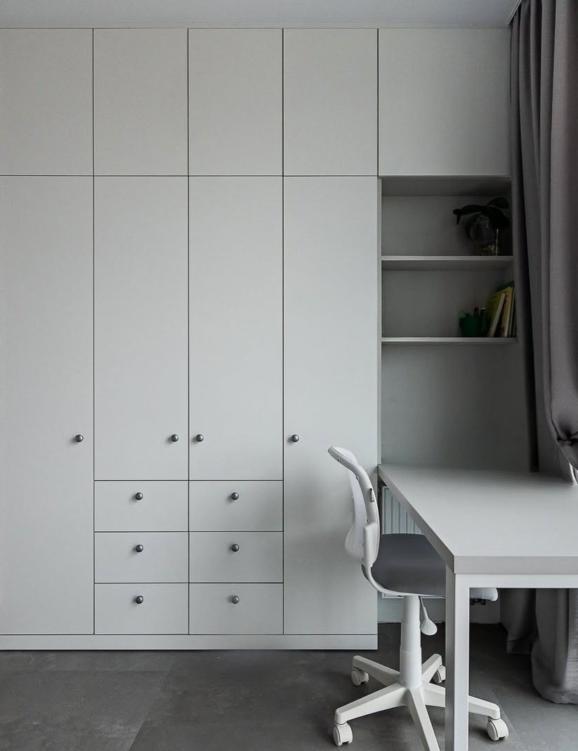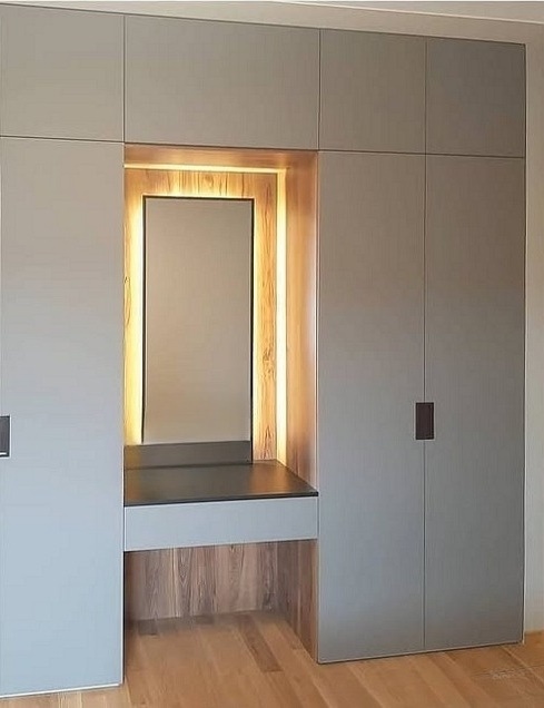 Встроенный шкаф во всю стену с рабочей зоной и зеркалом «Модель 526»