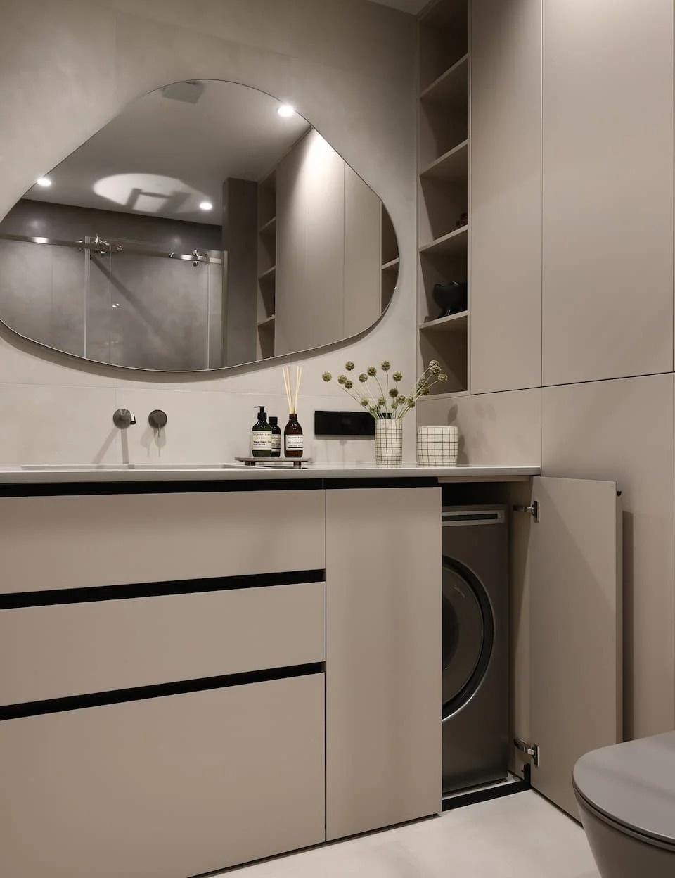 Бежевый шкаф в прихожую с трюмо и зеркалом «Модель 40»