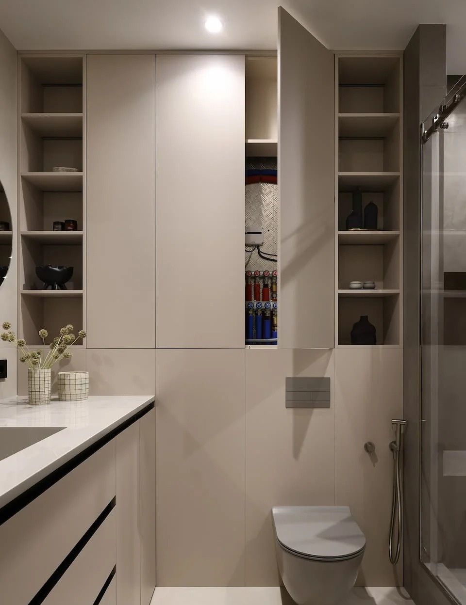 Бежевая прихожая с подсветкой и открытыми полками «Модель 414»