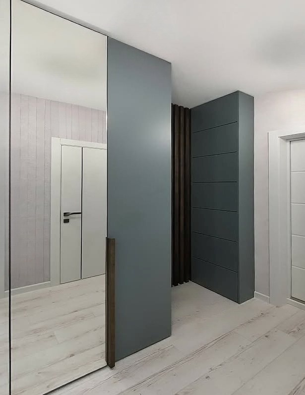 Серый шкаф-купе с диагональным делением и зеркалом «Модель 560»