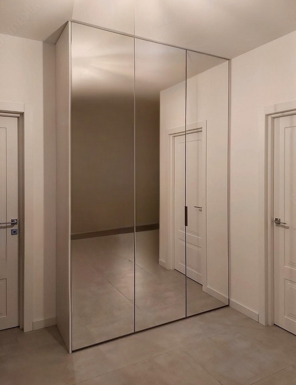 Трехдверный шкаф в прихожую с зеркальными дверями-купе «Модель 575»