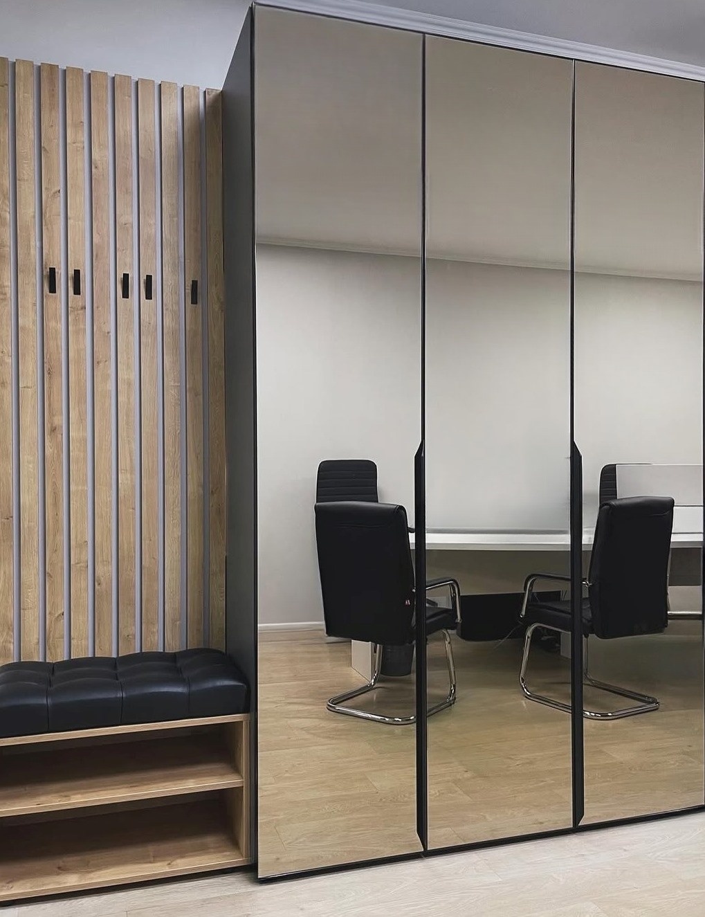Шкаф с зеркальным фасадом и вешалкой в офис «Модель 376»