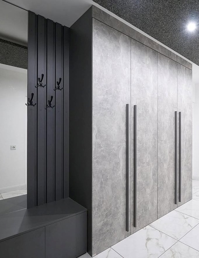Высокий шкаф «под бетон» с вешалкой в прихожую «Модель 400»